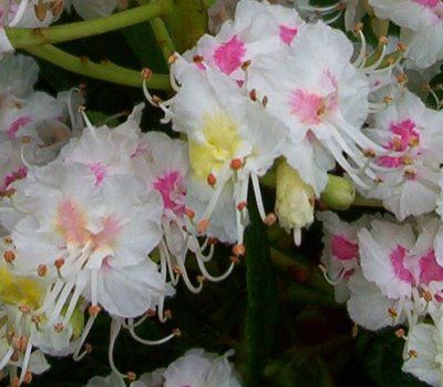 Here is an update on chestnut blossom. The buds appear on the frond in groups of eight. The eight consist of four pairs. Within a pair, one is pink centred and the other is lemon yellow. The same miraculous phenomenon occurs regardless of the main blossom colour of the tree. I saw somewhere a tentative explanation. Apparently the colour changes when fertilisation has taken place and this tells the bees that the nectar has been taken. Can you believe such a thing?