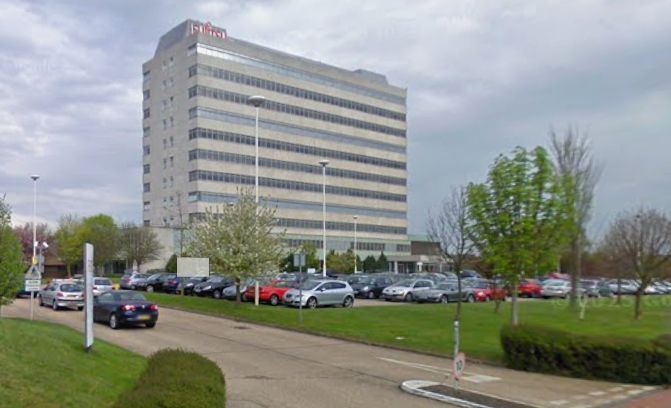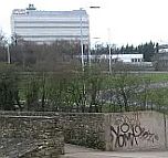 Mill Pond, Bracknell: you can see graffiti on the walls, and the Fujitsu building on the horizon