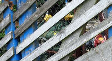 underpass which tunnels beneath the highway and the railway track, and connects to litter-strewn footpaths which take you to some places both grand and squalid. There’s a recreation park for Hewlett Packard, with special jogging routes and tennis courts. It looks nice but signs warn me to stay out or else the CCTV will see my misdemeanours. I imagine them sending Security in grey suits and dark glasses to chuck me out. Then there’s a public recycling tip with the unusual sign, “No pedestrians”. I imagine being accidentally bulldozed into a machine that compresses garbage,