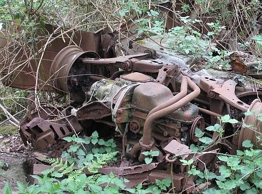 My picture shows the upside-down remains of a van I found in a bluebell wood.