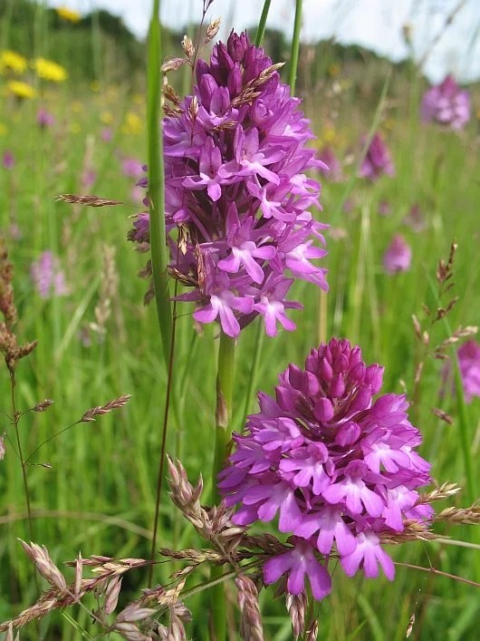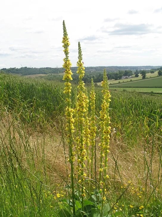 view from the hill in West Wycombe where St Lawrence’s Church is situated (with Golden Ball atop its tower)wild rose growing in a hedgerowfoxgloves at the margin of a woodelderberry flowers. The berries come later in the year, and can be harvested to make elderberry winemargueriteswild orchid growing in unmowed grassmulleinmullein growing on hillsideMullein caterpillarpoppies in a field left fallowbarley