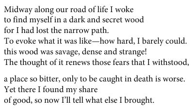 *** First three tercets of Dante’s Inferno, translated by Willis Barnstone.