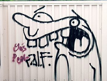 Vincent, I just want to clarify that I don't have a negative attitude toward graffiti in and of itself. Much of it is quite inspiring and communicates in a unique way. It's more of when it becomes violent, the stuff behind the artists that are sometimes in turf wars, etc. Also, some graffiti people around here also paint on people's fences. To borrow yin-yang from Keiko, I guess I'm just trying to see and not lose sight of the yin and yang of Graffiti.