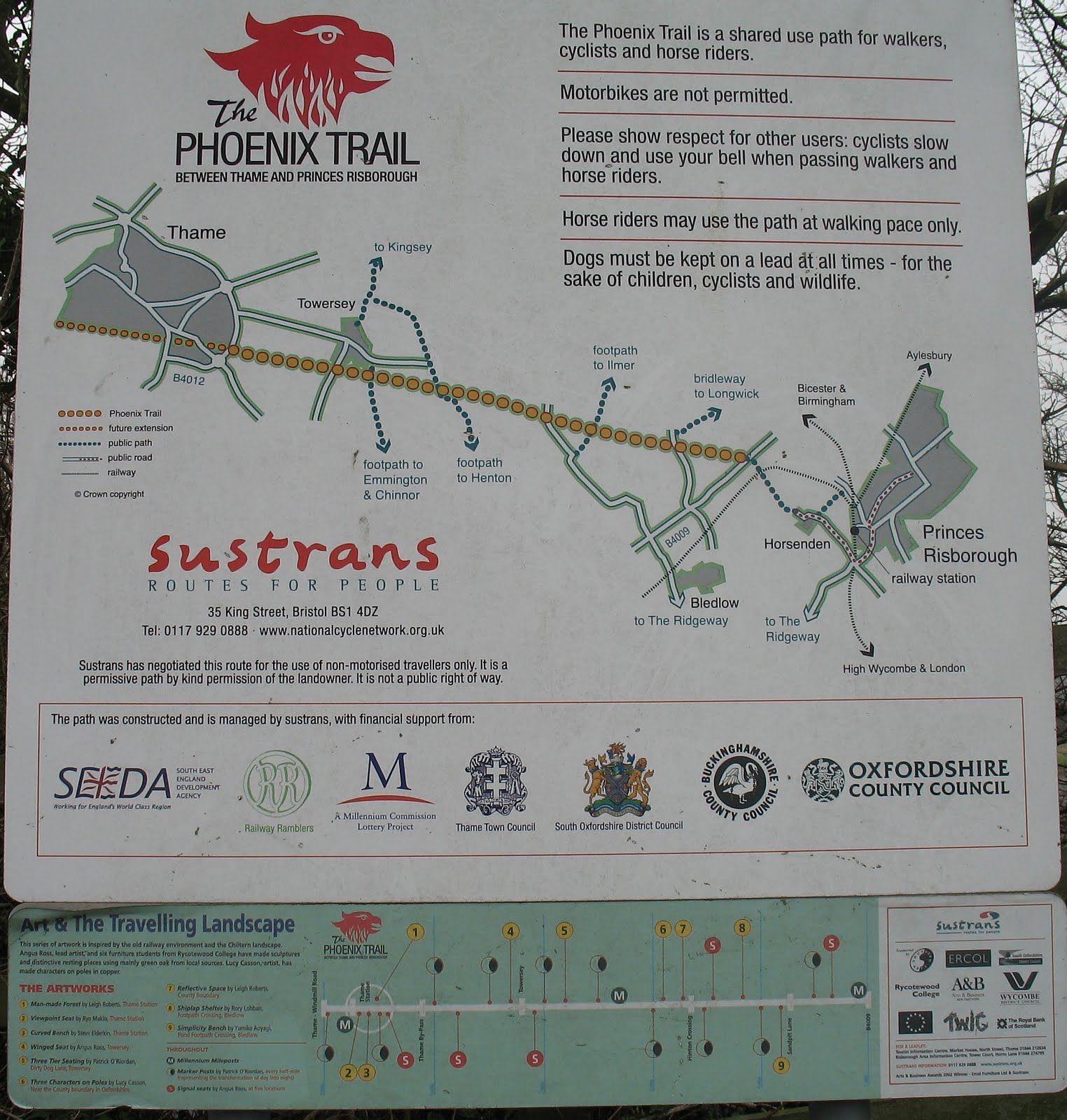 Links: Sustrans Phoenix Trail, Sustrans NCN 57, Wycombe Railway, Watlington and Princes Risborough Railway, Chinnor & Princes Risborough Railway, Princes Risborough, Thame, Tetsworth, Watlington, Chinnor, Bledlow