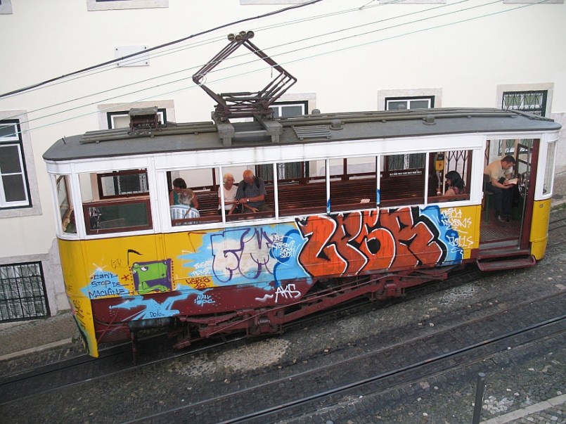 Trams can clank and scrape up steep inclines and tight bends, while sharing the cobbled streets with other vehicles. Our driver had to shout to some of them to clear our path, and we got past a jutting parked car with half an inch clearance. I recorded a soundtrack, but it hardly captures the quality of our old-fashioned journey. You had to be there. For major routes on level ground, they have modern trams. They are big, articulated and dull. When it comes to ‘new meets old’, I prefer the outrageous disrespect of graffiti on a transport heirloom, above. Commissioned artwork or lawless vandalism? I can’t decide. Same goes for the crocodile and bird on the building, above. And that is how it should be.