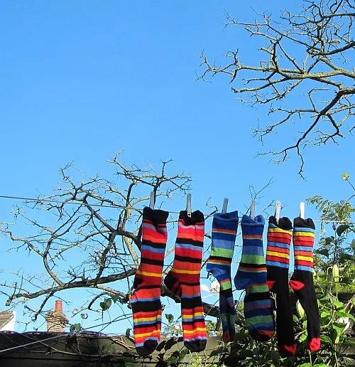 5. Yes, daily experiment, every experiment leads to another. The goal is unknown, the goal is not the point. Striped socks in sunlight! That's today's point.”…So my task was easy. I just had to report back on how it was done. I was hanging out clothes at the time, with blue sky above and birdsong in the air. “