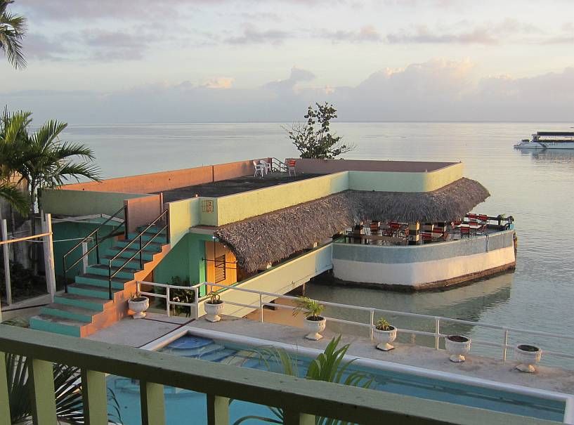 We didn’t have time for tourism. The closest we got was 2 nights at the Ocean Palms Hotel in Ocho Rios, one of those resorts where cruise liners unload their passengers for beaches and tours.