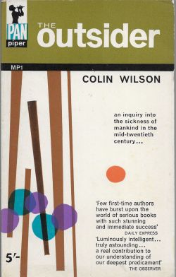 I lived in a fruitful isolation—narrowly avoiding a sense of desolation. I hung quotations on the wall, drawings, diagrams, maps. I tried to write a surrealist story, whatever bubbled up from the subconscious. It scared me, I couldn’t face up to it. I had a copy of Colin Wilson’s The Outsider. I’ve been wondering how I acquired it. Just now I’ve rediscovered an image of the cover. I realize it was the 1963 edition. I must have spent the five shillings and bought it.