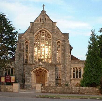 The Church of St Michael & All Angels. It looks ablaze from within, but the light is reflected from the setting sun[/caption]