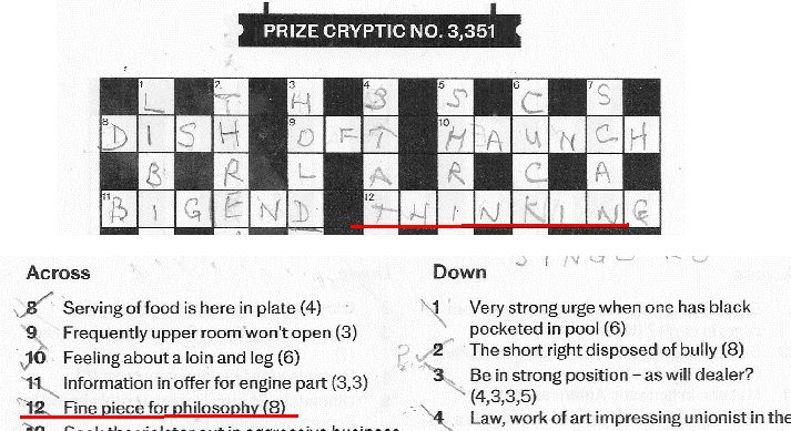 Inspiration for this post came from today’s Cryptic Crossword: fine is thin and king is a chess piece. Philosophy is a form of abstract thinking.
