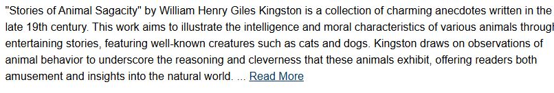 I have undertaken, my young friends, to give you a number of anecdotes, which will, I think, prove that animals possess not only instinct, which guides them in obtaining food, and enables them to enjoy their existence according to their several natures, but also that many of them are capable of exercising a kind of reason, which comes into play under circumstances to which they are not naturally exposed.