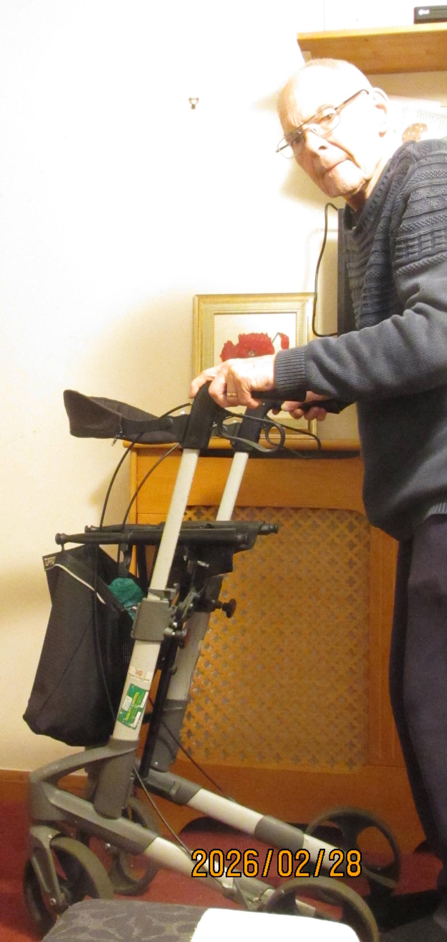 Yesterday, Tuesday 24th Feb 2026, I met for the first time Mark able-bodied and knowledgeable, who said I should get a walker that will let me walk at full height. It’s arriving tomorrow.