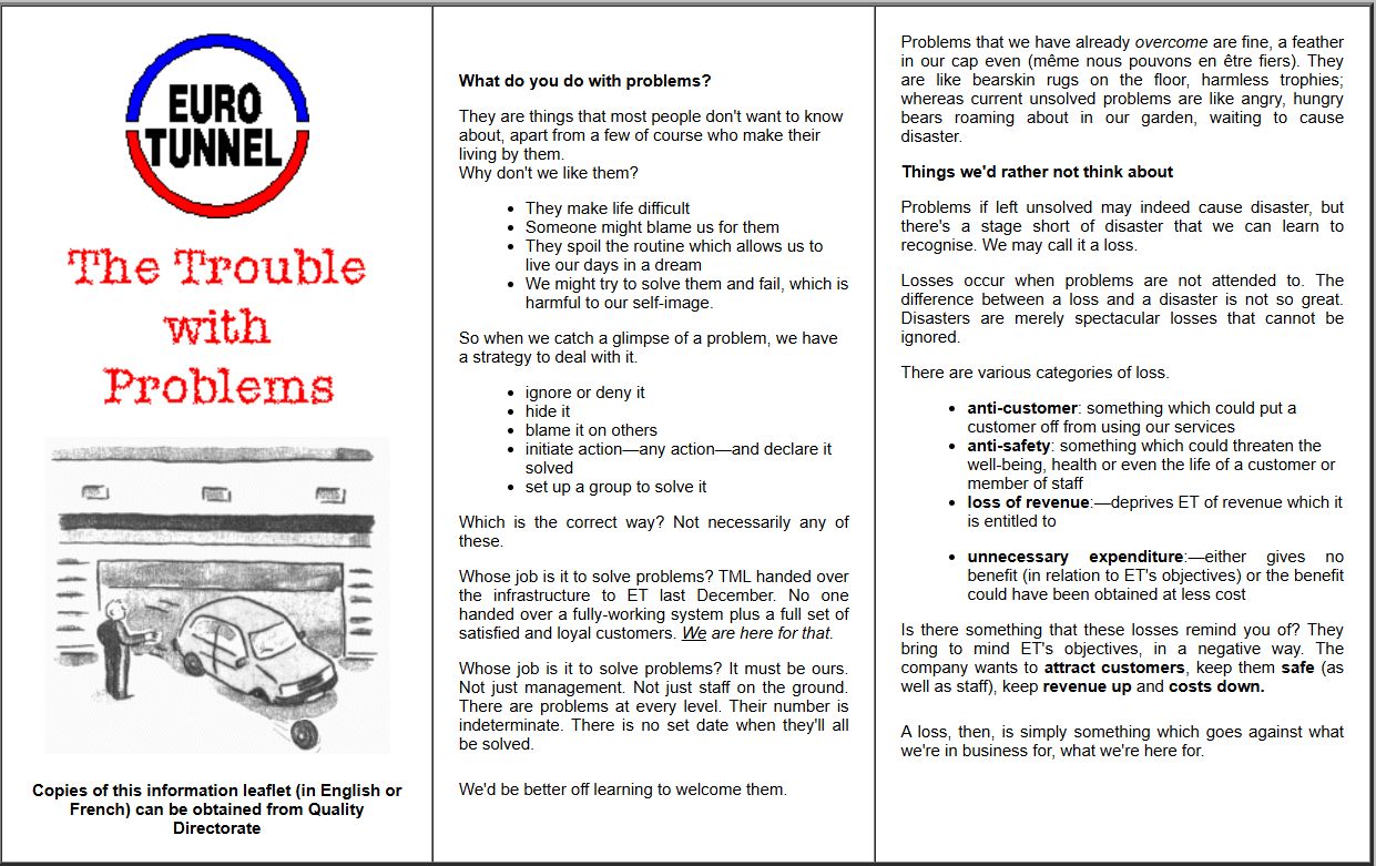 In 1993 I was contracted to Eurotunnel, based on its offices in Folkestone. Didn’t have much to do, just attend various weekly meetings, so I had times for creative initiatives, not all of which were adopted by our Director, Jacques Rossi, a kind of noble Corsican with grand ideas, like his charismatic compatriot Bonaparte, but better-looking and taller. See also this tale about my time there.