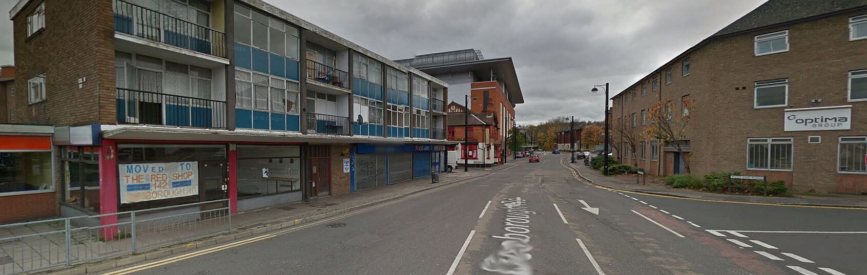 Desborough Road proper starts here. The Second hand Furniture Centre used to be an “International Club”, whereby hangs a tale . . . now it does indeed sell used furniture, as does the white building next door, for charity